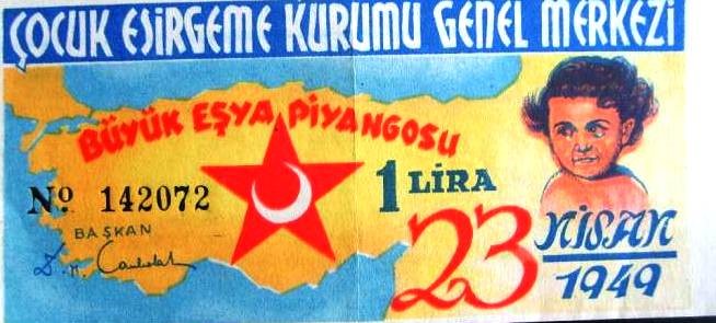 “Her yıl 23 Nisan’da çekilmesi mutat olan ve yüzde kırkı mahalli şubelere bırakılan eşya piyangosundan ilk sıralar Kurum’a epeyce gelir sağlanmaktaydı. Ancak bu piyangonun muhtelif sebeplerle gittikçe rağbetten düştüğü müşahede edilmiştir.